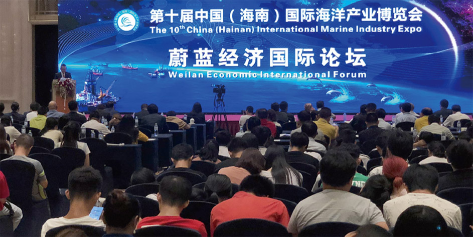 2018年9月28日,由中国贸促会、中国国际商会主办,经世智库等单位协办,以“自贸港:蔚蓝经济新支点”为主题的蔚蓝经济国际论坛在海南省海口市召开来自全球各地的政界、企业和专家就创新海洋经济发展、深化海洋国际合作、推动产业转型升级、打造海洋经济新动能等多个维度进行政策研讨、科技交流和经贸合作,为落实国家海洋强国战略,推动21世纪海上丝绸之路建设,以及世界海洋经济发展赋予新动能。